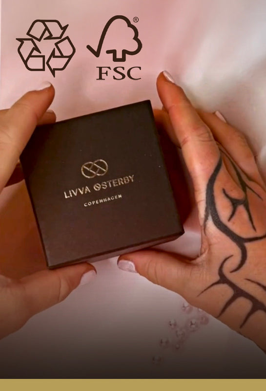 Hos Livva Østerby er vi fokuseret på at beskytte miljøet gennem ansvarlig emballagepraksis. Vores tilgang indebærer at bruge FSC-certificeret emballage, samt genbrugspapir/pap til vores smykkeæsker. Ved at minimere vores brug af plastik og stræbe efter at reducere spild, bidrager vi aktivt til en mere bæredygtig fremtid.